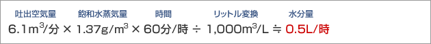 (コンプレッサーで作られた圧縮空気に含まれる水分量)-(圧力下ドライヤー出口における圧縮空気中水分量)